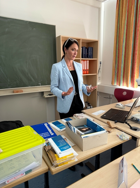 Die Fotos zeigen Kriminaloberkommisarin Sandra Boßert im Unterricht.